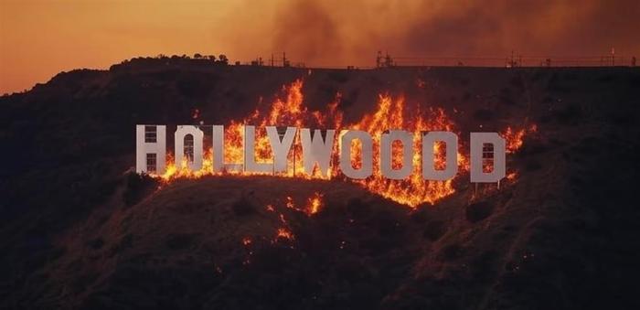 所以当这样一个 “特别美国” 的文化象征,如今被天灾人祸(且主要是人祸)造成的大火包围,附近繁华的加利福尼亚州洛杉矶县贝弗利山庄那些名流巨星的豪宅被烧成白地废墟,而政府媒体人民在互相甩锅互相谴责互相打嘴炮却无人能阻止火灾继续蔓延的时候,同样具有巨大的时代象征意义。