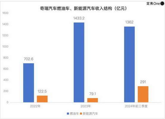 收入结构也暴露了它的短板。2022 年、2023 年,奇瑞新能源汽车在总收入中的占比分别是 13.2%、4.9%。2024 年 1-9 月,这部分收入为 291 亿元,占比 16%,远低于比亚迪(100% 新能源)和吉利(新能源占比约 41%)。