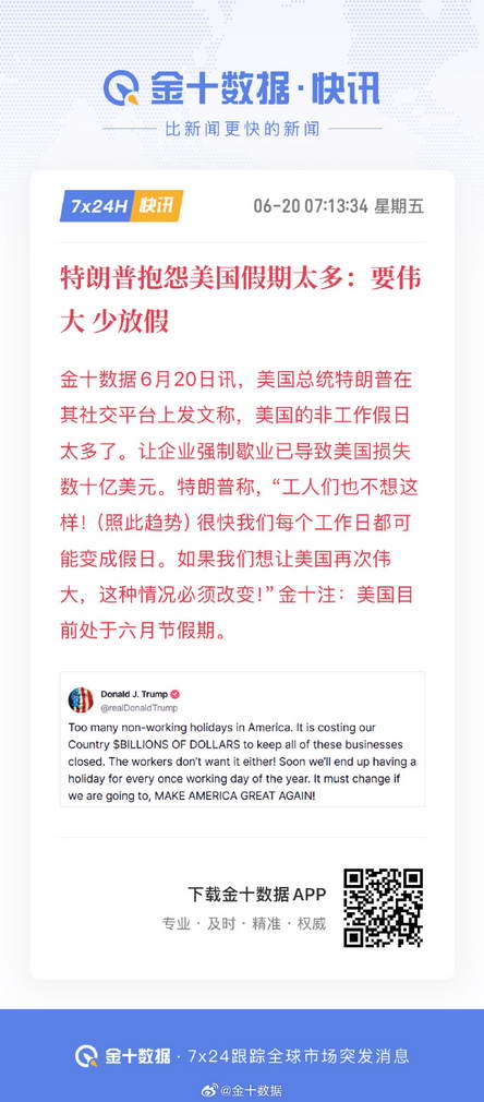 @一玶海岸:川总对美国的假期开火了,认为美国假期太多了浪费国家好多钱,工人们也不想要这么多假(这一点高度存疑……)