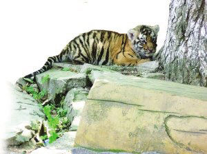 据工作人员介绍,这只幼虎为东北虎,一个月大,还在吃奶,间或也吃肉。“这只幼虎不是专门用来拍照的,其他幼虎也有‘出镜’的机会,一只值一天班,从上午10点到下午4点。”