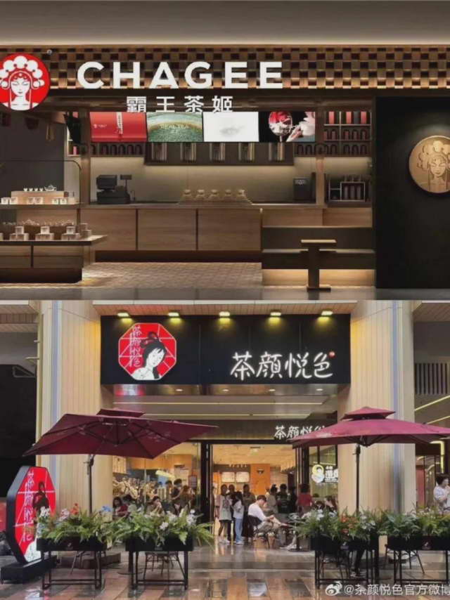起初,霸王茶姬被锐评,从品牌 LOGO 到门店风格,甚至产品及品名,都和茶颜悦色很像。
