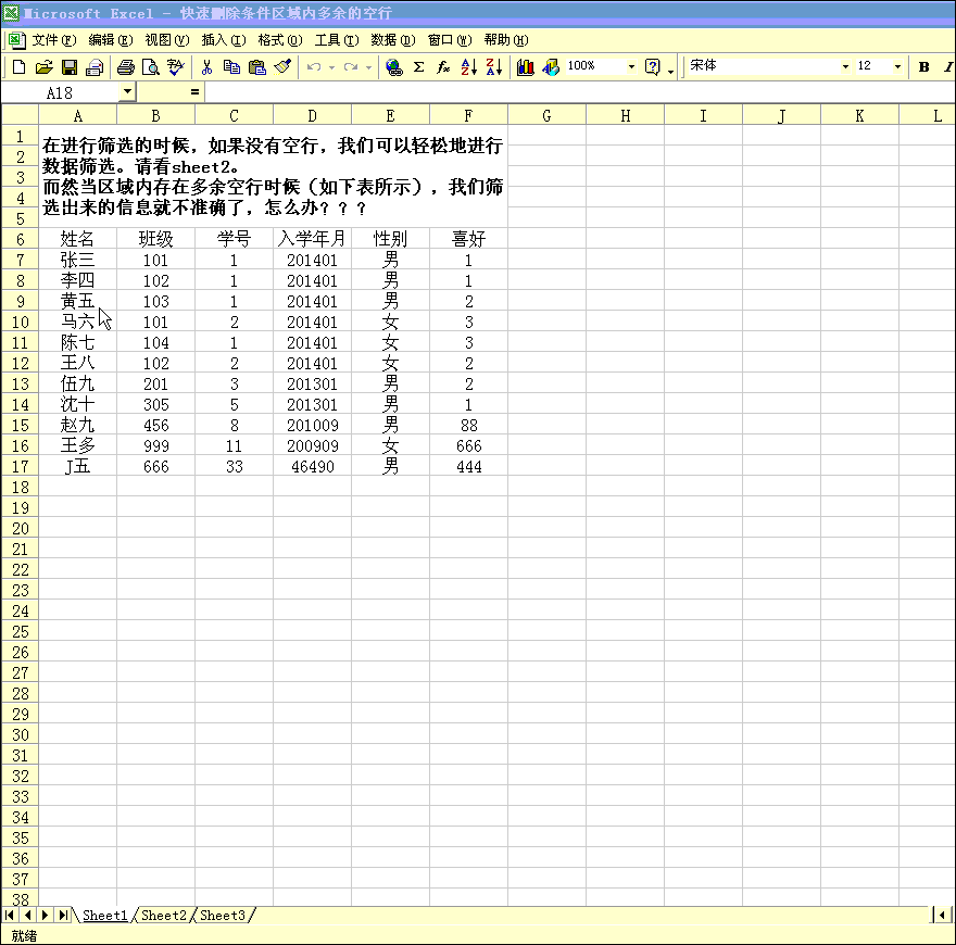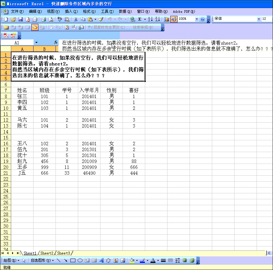 Excel知识兴趣点十五:快速删除条件区域内多余的空行