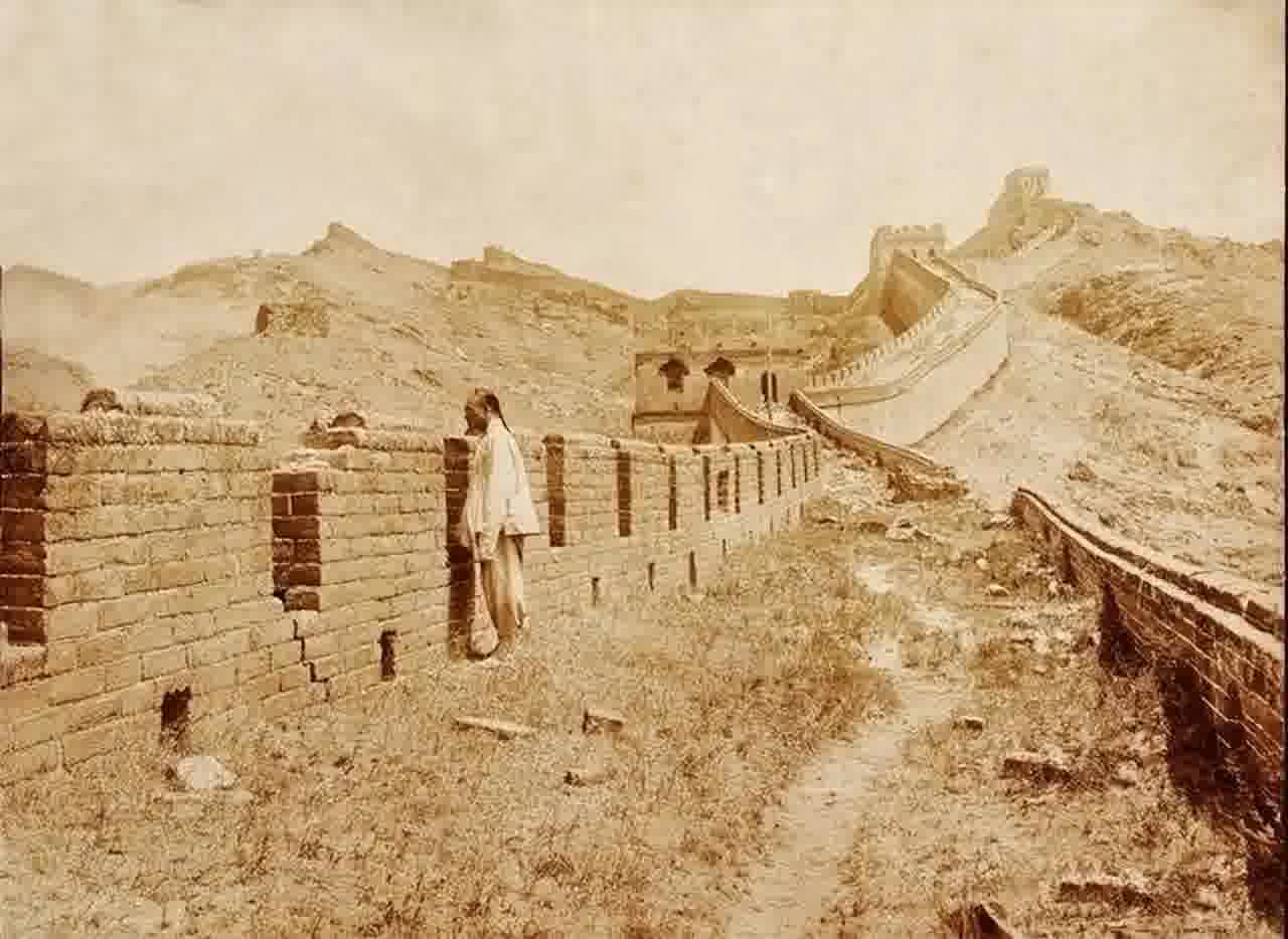 9.1907年的万里长城,上面杂草丛生,碎砖遍地,已经很久没有修缮了。