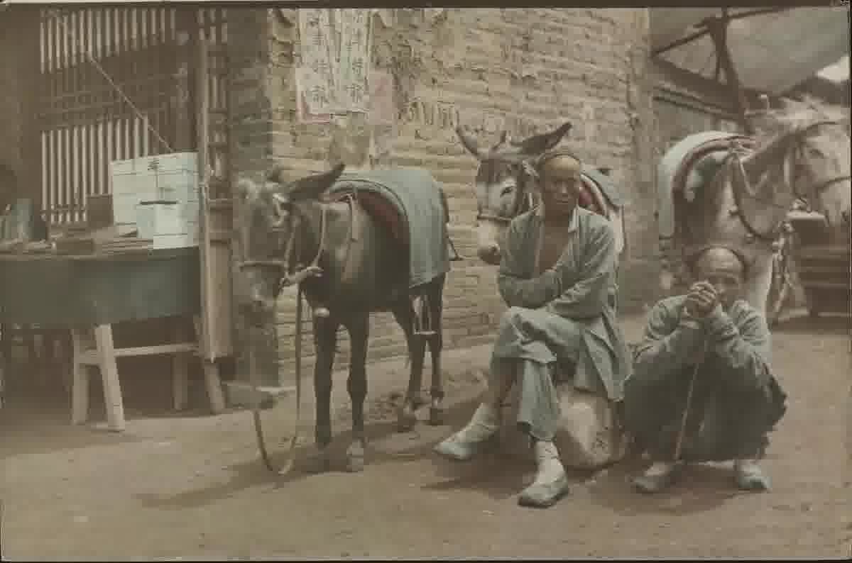 11.街头两名正在等生意的骡子司机,他们就靠帮别人驮货赚取报酬。