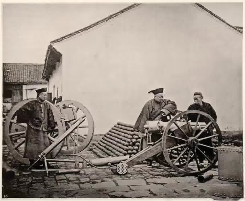 13.几名军官站在军火库的大炮附近,当时国库空虚,士兵们就靠着这些老旧的武器对抗侵略者…