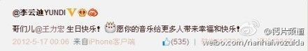 据说,云迪只给两个人发过生日祝福。一个是贝多芬,一个就是王力宏。难怪王力宏有张专辑叫《情敌贝多芬》。