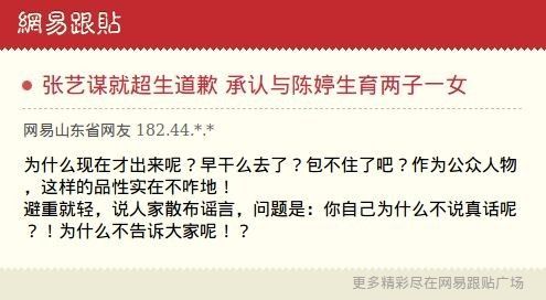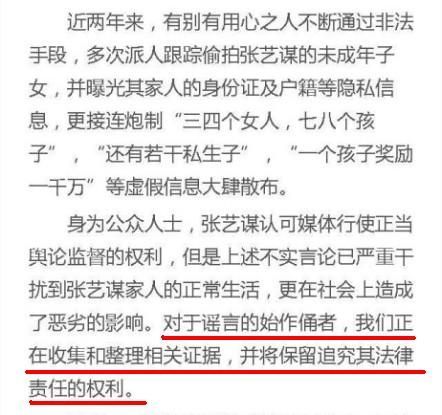 张艺谋工作室严正指出:张艺谋与其妻只有两个儿子,一个女儿。正在搜集和整理相关证据,并将保留追究造谣者法律责任的权利……(雾都拦江)