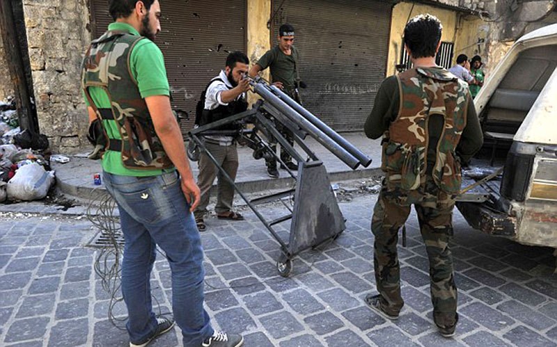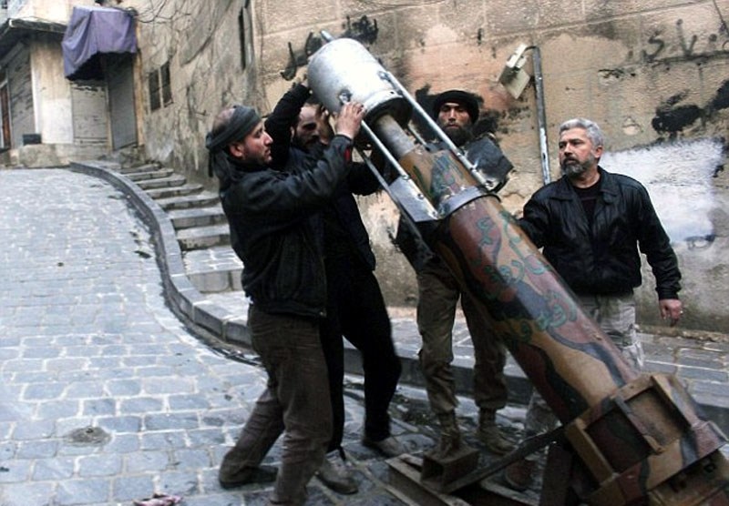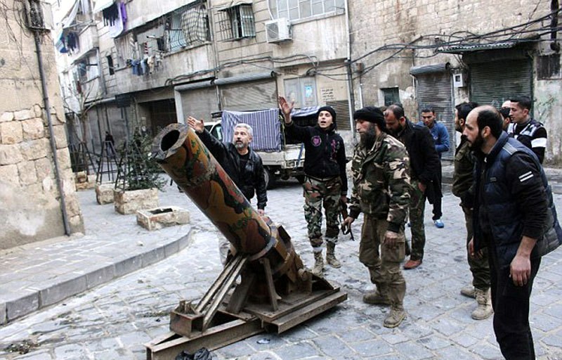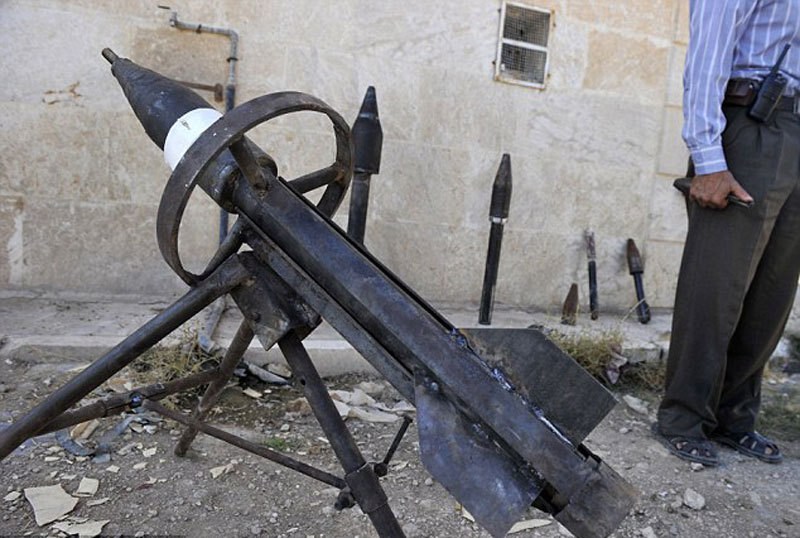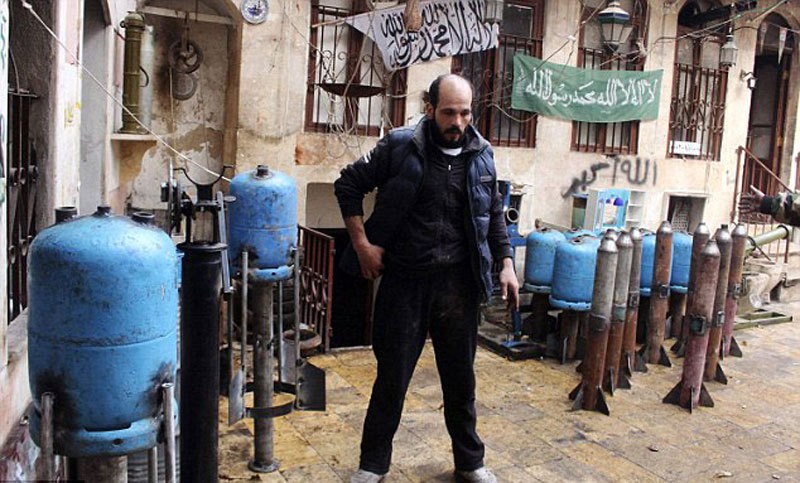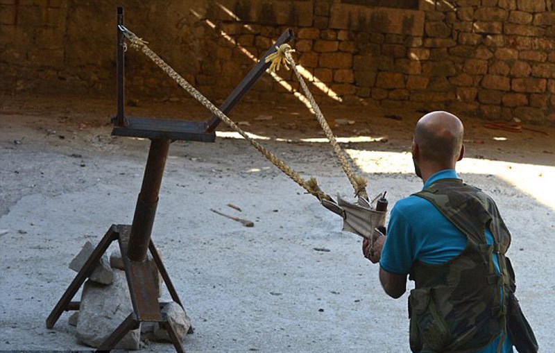 据每日邮报报道,武器装备较为落后的叙利亚反对派在交火间隙也没闲着,他们不断开动脑筋,就地取材,自制了一件又一件有些“雷人”的武器。而这种简易“迫击炮”发射的炮弹也是士兵们就地取材的,直接由排水管改造而来。另外,他们把民用煤气罐稍加改装,就造出了一枚枚简易炮弹。