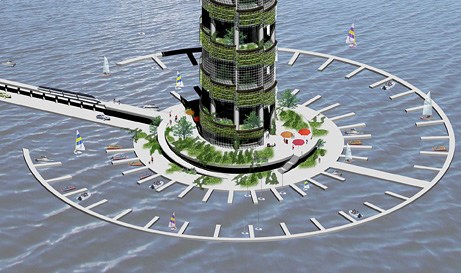 意大利建筑师克里斯蒂纳·法弗莱托和安东尼奥·基拉迪设计的海水垂直农场,旨在满足人们在一个淡水资源不断萎缩的时代日益增长的灌溉需求。他们的设计理念是利用海水冷却和加湿温室。设计团队在网站上解释说,空气中的一些水蒸汽可以被转换为淡水以灌溉农作物。海水垂直农场将建在迪拜,当地的淡水和蔬菜均较为匮乏。