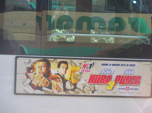 (笔者在西班牙巴塞罗那发现公车上有成龙电影的海报。摄于07年)