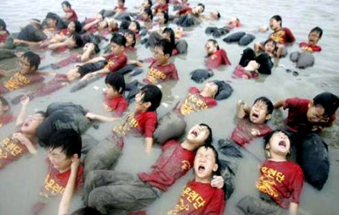 军训中的韩国小学生