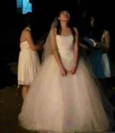 22日晚,武汉理工一大二女生在男生宿舍楼下穿着婚纱向男友求婚告白。