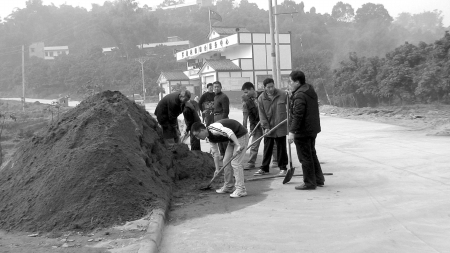 朱继宏(前弯腰铲沙者)生前工作照