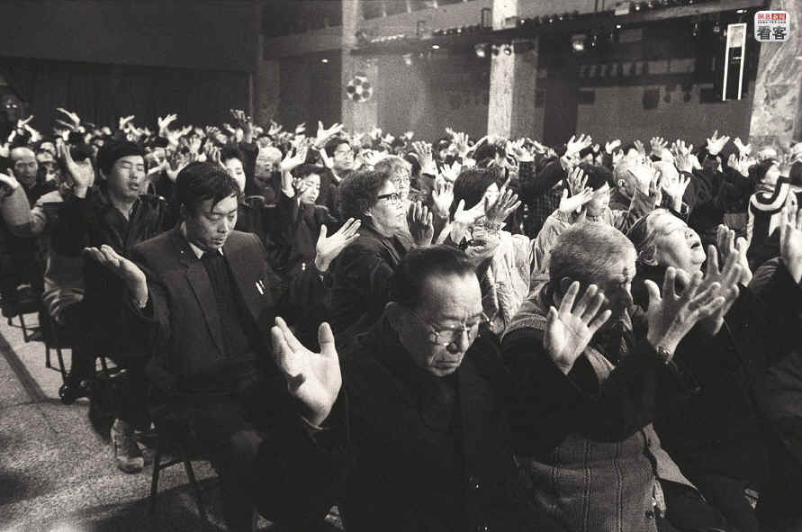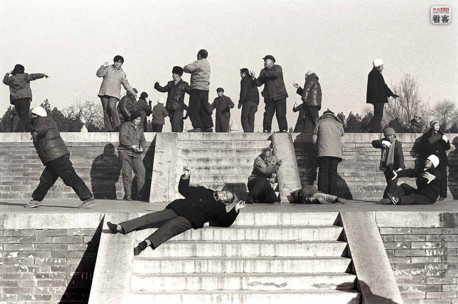 1989年冬,北京地坛公园,人们努力练习当时热门的罗汉功。对于气功热的成因,有说法认为当时的武术热潮让人们的志趣从普通的体育锻炼转为气功修炼,同时在生活条件改善后,人们开始关心身体,试图通过非正规的方法去治疗一些奇难绝症。