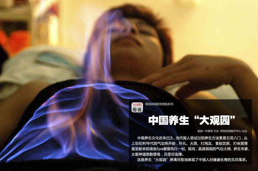 2005年5月20日,合肥,一位男士正在做“火龙”保健。被称为“火龙”的火疗法据称根据经络学原理,是融藏医学和美容医学于一体的一种新的理疗方法。