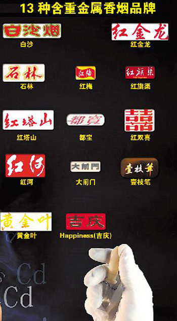 第九届亚太烟草或健康会议上一份科研报告称中国产的13个品牌卷烟检测出含有重金属,烟草中含有的铅、砷和镉等重金属成分,其含量与加拿大产香烟相比最高超出三倍以上。中国相关部门在驳斥这一研究成果时称,报告以加拿大严苛的标准做参照并不公正,并且世界上其他国家也没有对整支烟的金属市场准入标准。但中国土壤的严重重金属污染以及中国烟草检测管理机制的缺失,中国香烟中重金属含量确实大大高于其他国家。况且其他国家没有标准并不说明中国可以没有相关标准,这并不足以成为中国香烟没有重金属标准推脱的借口。