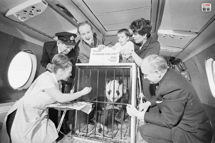 英国方面随后发现,孤独的“姬姬“需要一个伴侣。在向北京求援遭到拒绝后,伦敦动物园寄希望于借用莫斯科动物园的“安安”。“安安”是当时中国和朝鲜(朝鲜在1965年至1980年间先后获赠五只大熊猫)以外仅有的一只雄性大熊猫。经过长达一年半的高级谈判,分属两个阵营的英国和前苏联终于达成协议,同意两只大熊猫进行联姻。图为1958年10月16日,大熊猫“姬姬”乘坐专机前往莫斯科。
