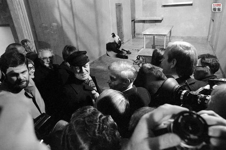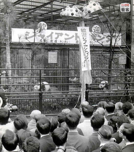 中西关系缓和后,大熊猫被纷纷送往西方,受到各国民众追捧。1972年中日邦交正常化,“兰兰”和“康康”两只大熊猫被赠予日本。据报道,熊猫专机进入日本领空后,就有一个战斗机编队进行护航。1979年,日本开始向中国政府提供政府开发援助,大熊猫“欢欢”和“飞飞”也相继“出使”日本。图为1972年 11月5日,日本东京上野动物园,民众庆祝大熊猫落户日本。