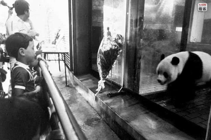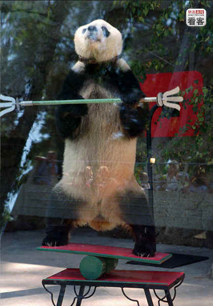 1984年到1988年,仅北美地区就有数十个城市从中国租借到了熊猫。1984年,中国曾租借一对大熊猫到美国巡展3个月,动物园在短短两三个月内获得了千万美元的门票收益。但同时频繁的活动延误了大熊猫的繁殖,一些让大熊猫演杂技的训练方法也遭到质疑。图为1987年7月31日,美国圣地亚哥动物园,一只大熊猫被训练为游客表演杂技。