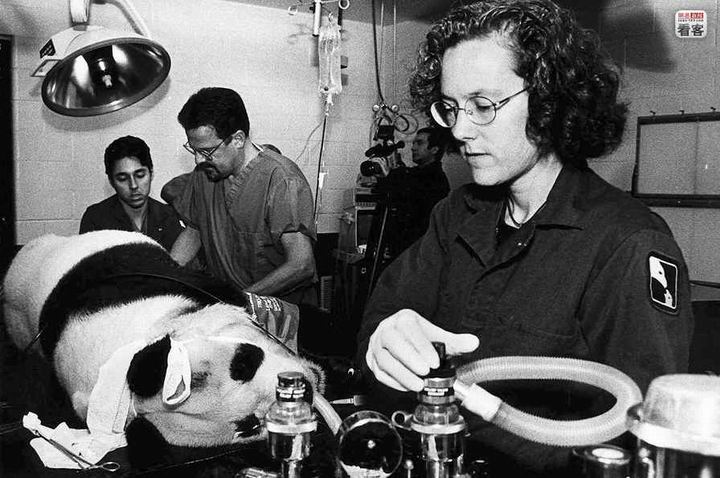 截至1982年,中国政府共送出了23只大熊猫,目前尚有德国的一只和墨西哥的三只熊猫后代存活,其他的均已客死他乡。图为1997年4月22日,美国华盛顿国家动物园,医护人员对患病的大熊猫“兴兴”实施手术。
