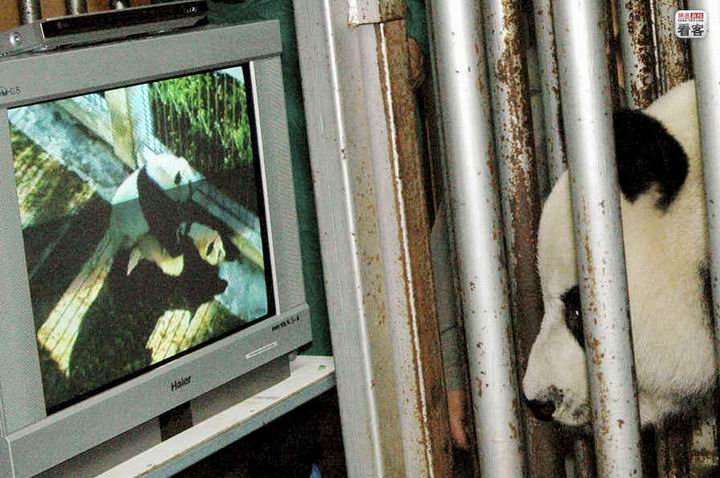 配对问题也是海外熊猫延续血脉的一个老大难。尽管大熊猫基本都是成双配对出国的,但因为熊猫在择偶问题上非常挑剔,加之人工繁殖技术成功率不高,熊猫数量有限的海外动物园为此头疼不已。“林惠”和“创创”2003年由中国租借给泰国,迄今没有繁育后代。图为2007年3月26日,泰国清迈动物园,工作人员给大熊猫“创创”播放熊猫交配录像。