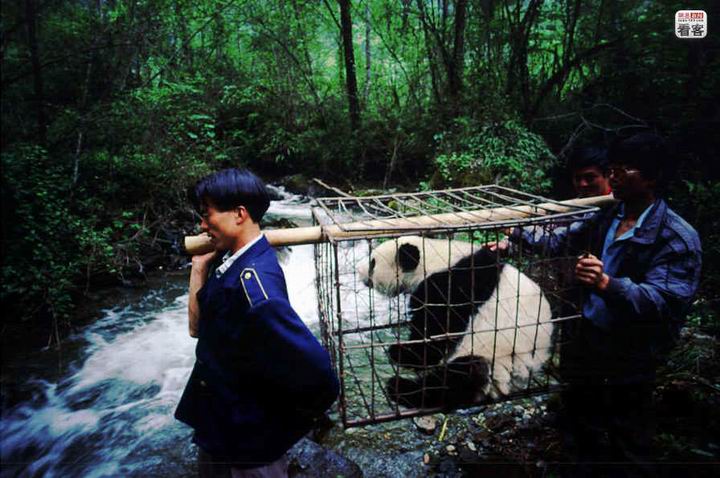 1982年,由于野外大熊猫生存状况恶化,数量锐减,中国停止向外国无偿赠送大熊猫。与此同时,中国政府开启了著名的“熊猫租借”方案,即短期内向外国动物园租借大熊猫,对方支付租金。一时间,大熊猫成了财大气粗的创汇大户,国内相关部门争相出口,造成大量捕捉大熊猫。图为1996年5月20日,卧龙自然保护区,一头野生大熊猫被捕获。