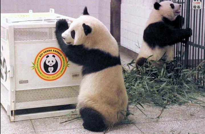 在国际环保组织和美国政府的压力下,中国政府停止了以商业目的租借大熊猫的做法,代之以“大熊猫合作繁殖”的名义。在这个名义下向外国租借熊猫,通常为期 10年,接收国向中国支付1000万美元,平均每只熊猫每年的租金是50万美元。1994年,成都大熊猫繁育研究基地的两只熊猫首次以“科研交流大使”的身份,旅居日本白浜山野生动物园。图为1999年10月25日,成都熊猫基地,两只大熊猫等待被送往美国亚特兰大。