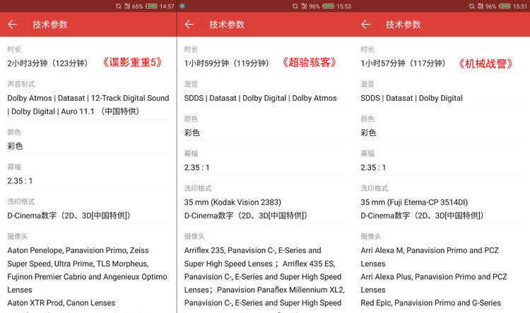 所谓的“特供 3D” 也是遵循上述“伪 3D ”的处理,只不过片源由国产大片换为引进大片。猫眼电影提供的影片资料显示,不少国外引进的影片如《超验骇客》,在海外只有 2D 版本,却为了迎合中国市场喜好 3D 的口味,推出 3D 版本的数字洗印格式,名副其实的是“中国特供”。