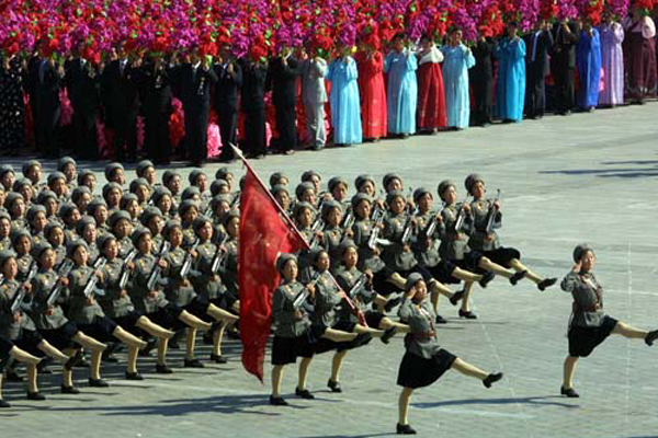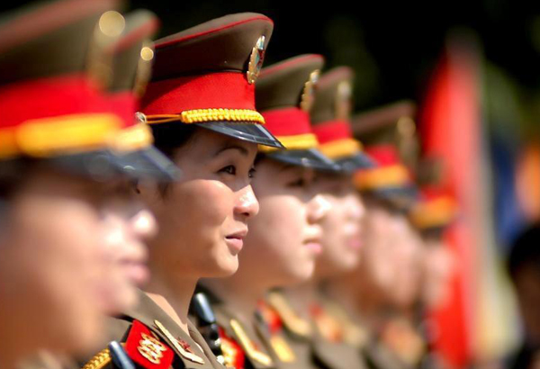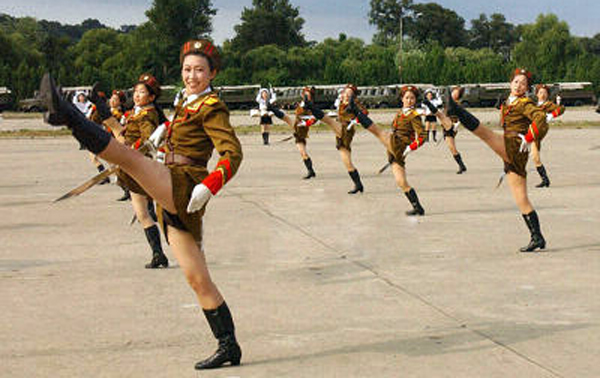朝鲜女兵的劈腿动作还真有点难度哦!