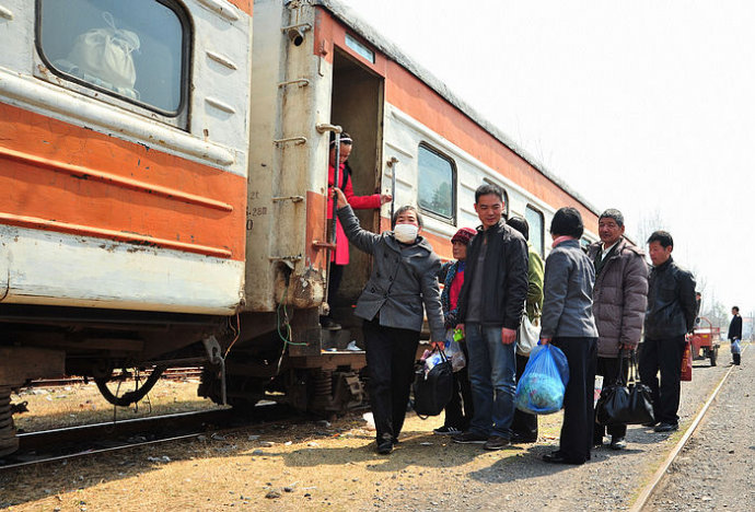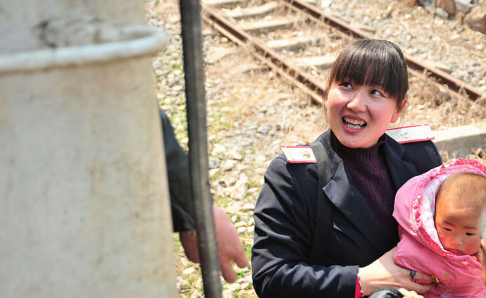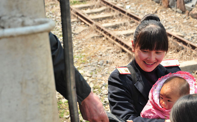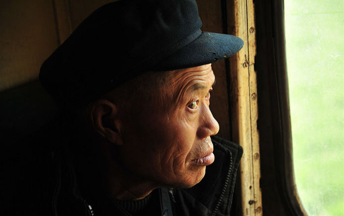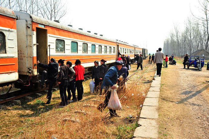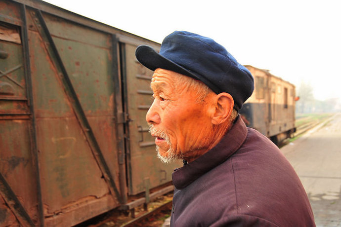 4.月台上站着等待的乘客,农村的老人似乎特别多,与这古老的火车十分协调。