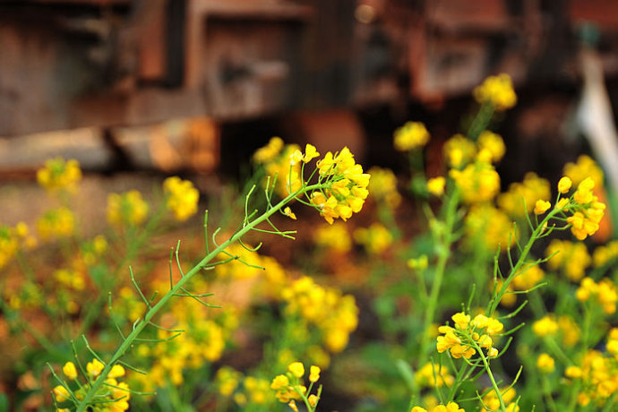5.铁道旁的油菜花,开得正艳。
