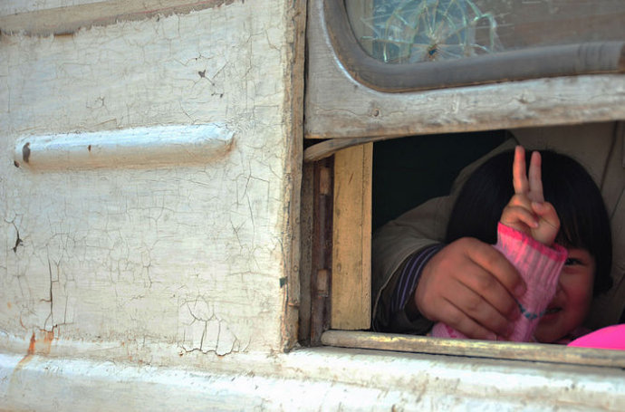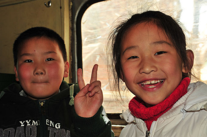 30.在这个车厢,我看见这样一群孩子,我说:给你们照个像啊,他们一阵欢呼。
