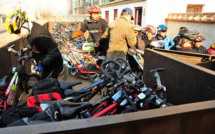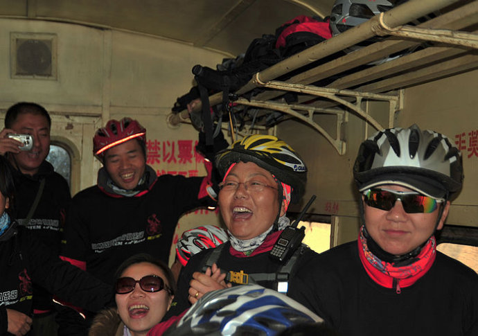 11.今天的小火车,如此爆满,一多半的原因归结于他们——70多个来自洛阳等地的自行车骑手,他们也要来感受一下这小火车。他们太兴奋了,一路高歌一路行,几乎唱遍了所有红色歌曲。