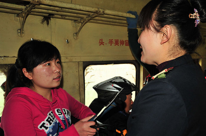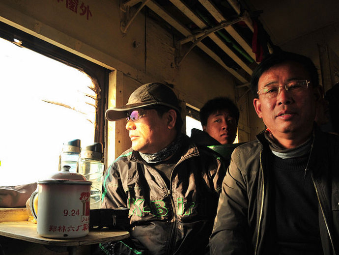 17.这位老哥是乘警,后面那位帅哥是随车的技师。这辆车乘客如此复杂,车辆如此陈旧,确实需要一个乘警,一个技师。我们一路上,就和美女车长、乘警坐在一起,聊聊这小火车的故事。
