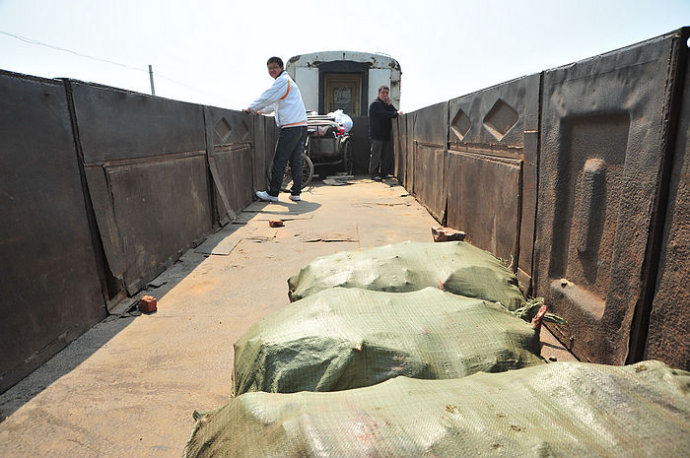 12.他们的坐骑就放在后面的挂车中,满满一车厢。据说,老百姓常常赶着牛坐火车的,那时这个车厢里,就圈着七八头牛。