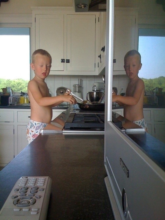 你们有没有发现,小男孩的眼睛是闭着的,但在镜子里他却是睁着眼!噢,不明真相的小编差点吓得要跳起来:这是不是灵异照片?我们都是相信科学的好孩子,退一步问:相机被黑了?照片是PS的?专家告诉大家:只要孩子眨眼的速度比相机的快门快就行了。他还详细解析了原理:像人眨眼一样,每拍一张照片,相机快门也会“眨”一下。虽然相机快门的种类有很多,但基本原理都是一样的。摄影师可以通过设置不同的快门速度来调节曝光时间。