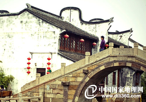 坊内的一条里弄开辟成花鸟市场,早起的店主忙着摆弄,正值春浓,奇花异草,芬芳扑鼻,衬着古朴的门廊檐头,倒是相得益彰。一拐弯,却是一条安静的水巷,木窗、石阶、黑檐、白墙、美人靠、骑河楼,一齐被画在水面上,廊下只有几个老人在打太极、练气功。一时间在这个幸福惬意的小城里恍惚了,仿佛某扇“卐”字纹的木窗下一刻就会被推开,就会有你最想见的那个人探出半个身子来脆脆地叫你的名字,而你正站在一座月形拱桥的上面。