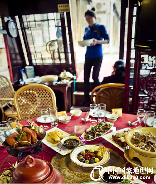 “船菜”是禾帮菜中的经典,还没开始吃,就先惊艳了——所谓船菜,其实就是把禾帮菜搬到游船上去吃,游船绕着禾城的运河水道缓缓滑行,进入南湖绕航一圈,入夜,在水道两旁梦幻的灯光下航行将近两个小时,一顿大餐,吃得眼花瞭乱,餐桌上,船舷外,目不暇给。未提箸,先垂涎;大快朵颐,停箸抬头,则忽尔狭长水巷,忽尔湖宽水阔。嘉兴产的五芳斋黄酒,比绍兴黄酒更温和,香醇得不知不觉倾空了一瓶,微醺之间,行船推出的微波揉皱一河彩灯,光影斑驳,分不清今夕何夕。