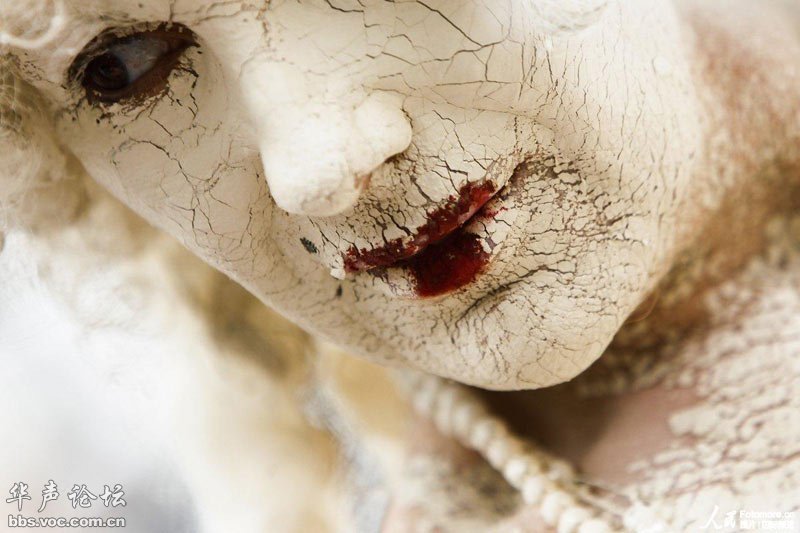2010年5月23日,德国,柏林:一位白脸红唇装扮的表演者参加德国文化狂欢节的游行活动