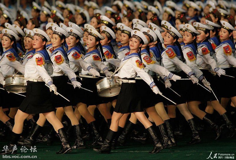 2010年10月9日,朝鲜平壤举行大型团体操《阿里郎》表演,图为身穿军装的朝鲜演员