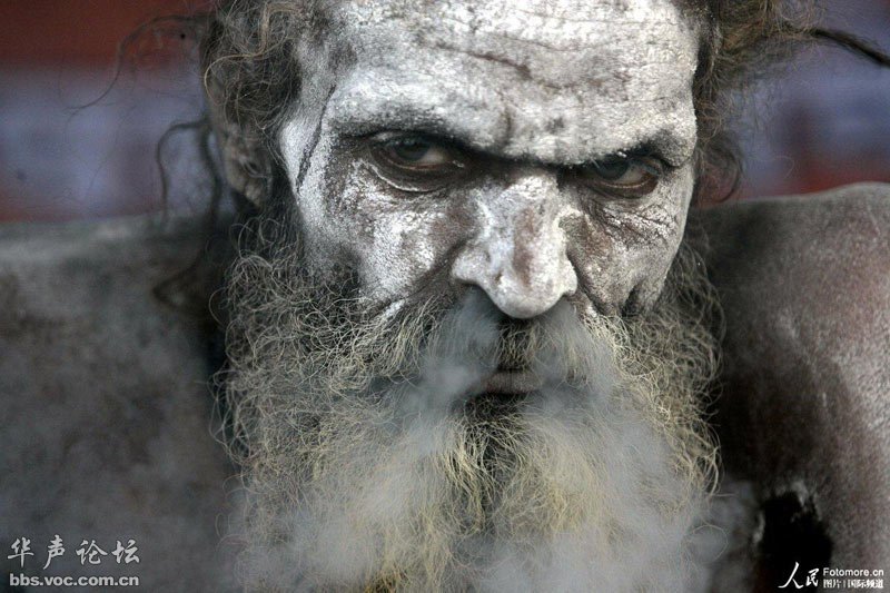 2010年1月9日,印度,加尔各答:脸上抹了圣灰的印度教圣人