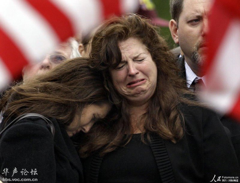 2010年10月5日,美国,法尔茅斯:驻阿富汗的美国阵亡将士灵柩归国,他的母亲和女友相拥哭泣