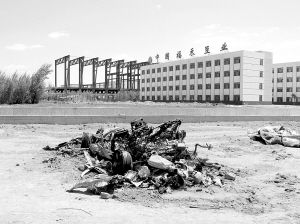 厂区内焚毁的奥迪车,金利斌在这辆车里自焚身亡 新华社 摄