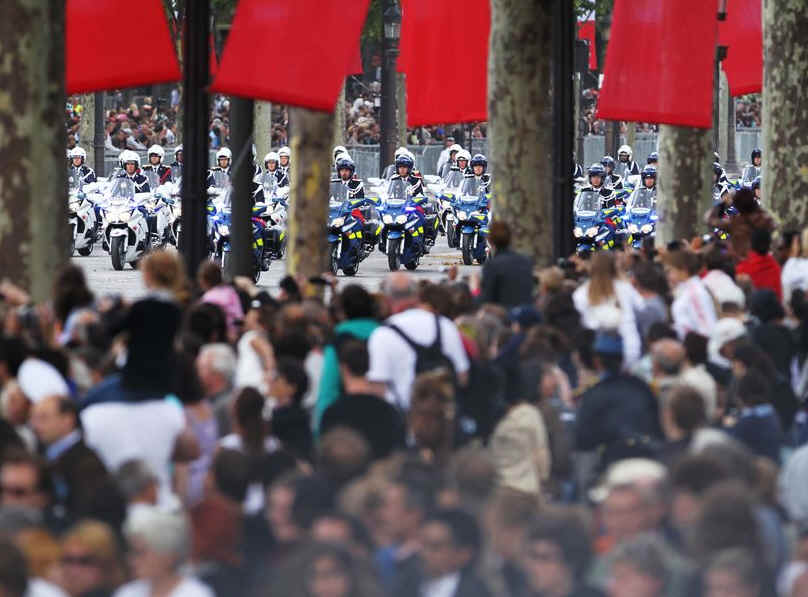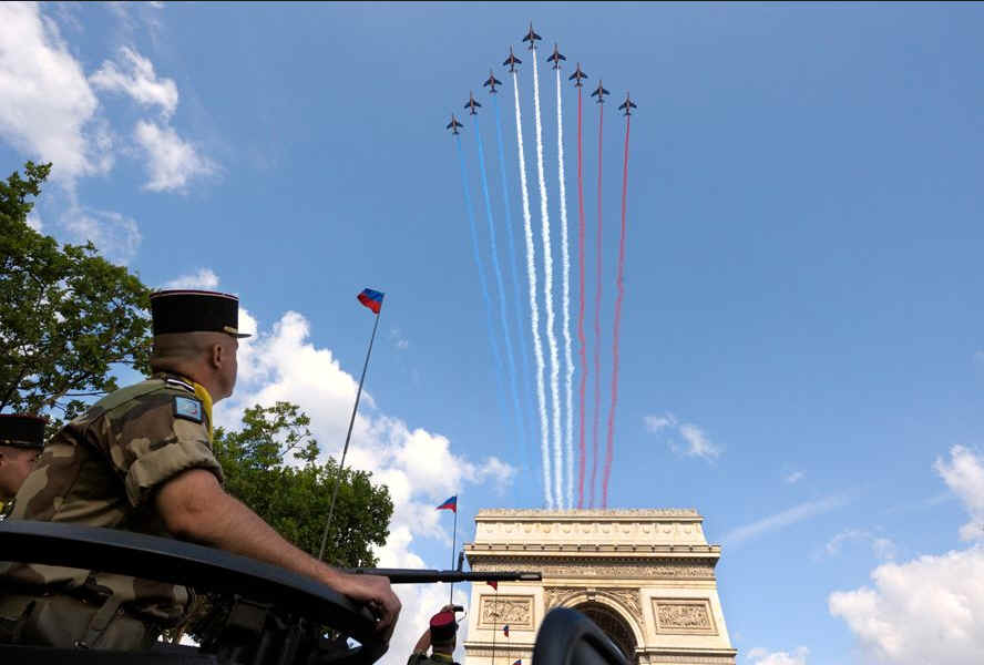7月14日是法国国庆日,一年一度的国庆阅兵游行在巴黎香榭丽舍大街上举行。1789年7月14日,巴黎人民攻下象征封建统治的巴士底狱,推翻了君主政权。1880年,法国议会正式将7月14日定为法国国庆日。
