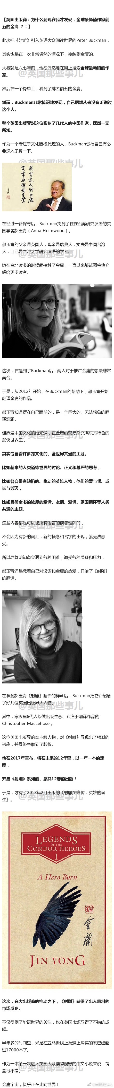 《射雕英雄传》终于第一次有了英文版!“黄莲花”,“旋风梅”,“打败龙的18次手掌攻击”....在这一个个魔性的翻译和概念下,英国人看完简直打开了“江湖”的大门....