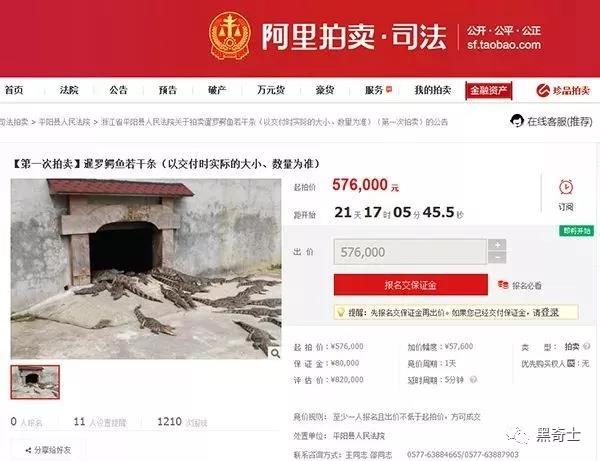 黑奇士查看淘宝拍卖平台,这批鳄鱼的拍卖已被撤回,撤回原因是“当事人对拍卖标的的价格衡量标准表述尚存异议”。