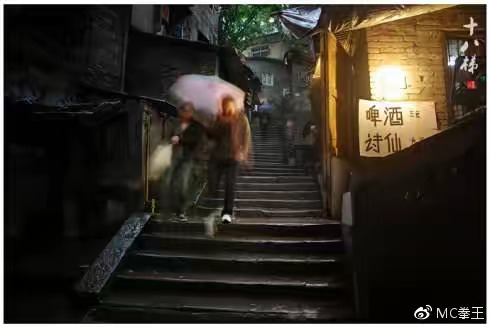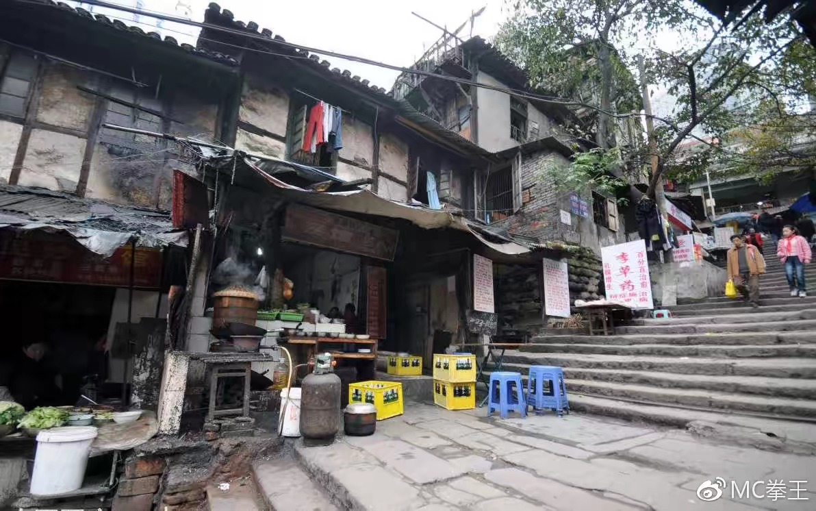 我虽然不看直播,但也知道现在重庆是座网红城市,魁星楼、洪崖洞、长江索道、在居民楼中抽插的轻轨,等等。但是刘萍说这些代表不了重庆。如果要给重庆选一个标志地点,那只有十八梯。