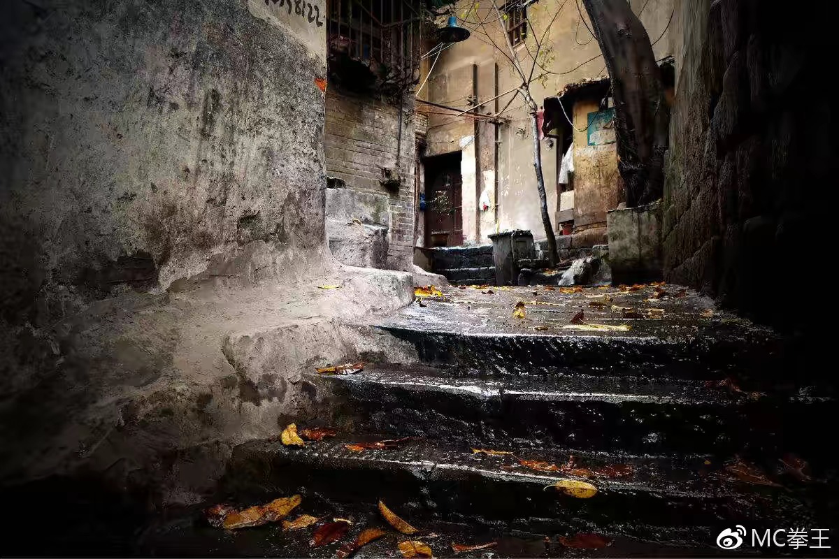 2016年10月,重庆进入了雨季,二审开庭前一天我跟卷帘大将挑灯夜战,在他家模拟法庭上的每一个细节,实在犯困了就走出家门透气。我们坐在黑色石阶上,凝视着凌晨4点的十八梯,雨中的十八梯。有的苍蝇馆子已经亮起黄豆般的灯光,光线穿过倾斜而下的水流,它清澈得让我意外。