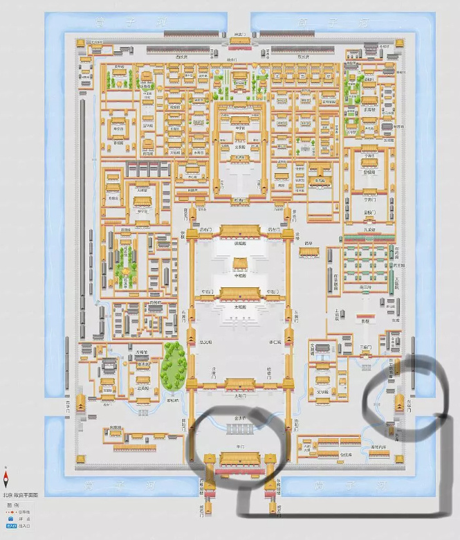 左侧是午门,右侧是东华门,隔了也就半个小时走路路程吧