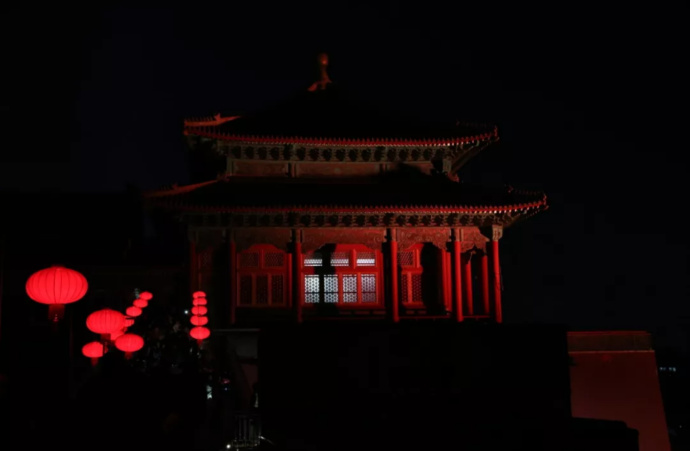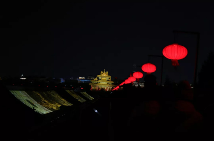 从午门牌楼上去,我们登上了才开放不久的城墙,踏着历史遗迹向前走,千米灯笼迎面而来,配上打着千条光束的宫城,恍惚间就有了穿越的感觉,这种感觉只看照片是根本没办法体验到了。